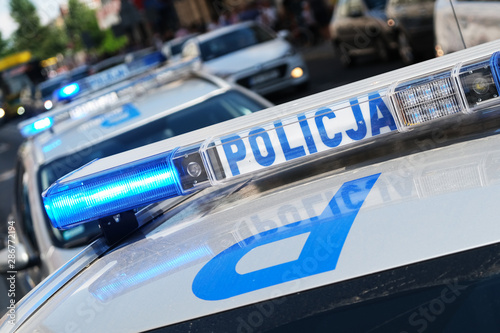 Katowice, Poland-august/15/2019 The logo of municipal police on police car.