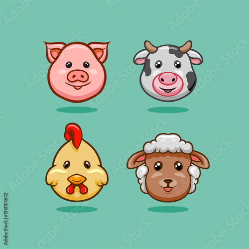 fleece, grill, bacon, milk, game, symbol, pet, illustration, mascot, icon, character, animal, children, cartoon, cute, pig, vector, cow, head, sheep, chicken, face, baby, collection, farm animal, rooster, avatar, comic, domestic, nature, sticker, cheerful, chick, doodle, enjoyment, greeting, playful, wildlife, agriculture, baby pig, education, anime, barn, cock, emotion, friendship, moo