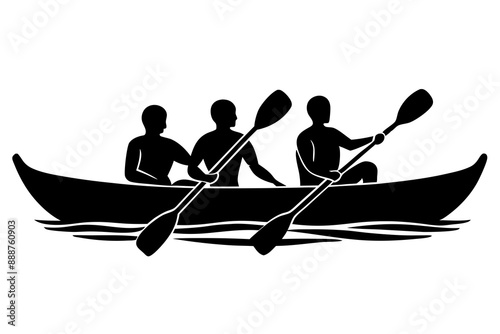 kayak Printable Vector Illustration. Kayaking silhouettes vector. People swimming in canoe.