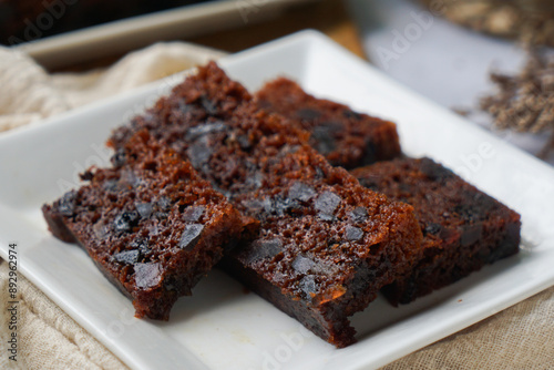 Kek Buah Kukus, a traditional Malaysian steamed fruit cake filled with dried fruits, nuts, and spices