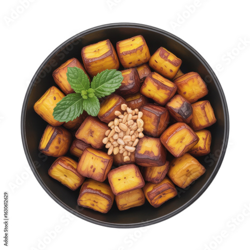 Kelewele Spiced Fried Plantains in Bowl with Garnish