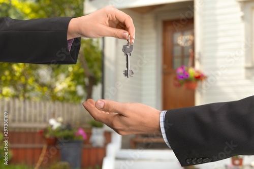 key, house, human hand, residential structure, exchanging, sold, giving, real estate, door, relocation, people, new, buying, realtor, business, selling, front door, holding, owner, built structure, passing, man, client, woman, receiving, outdoors, satisfaction