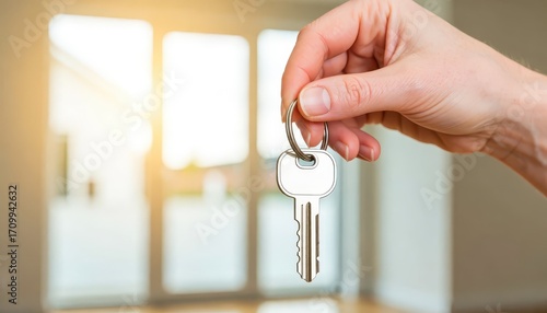 Key handover event new home real estate indoor environment close-up view property ownership concept