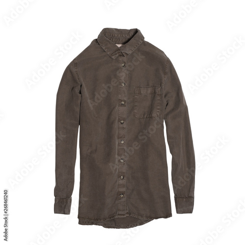 Khaki shirt isolated on white background. Fashion clothes concept.