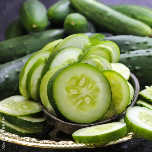 food, nature, health, green, plant, salad, healthy, diet, photo, vegetable, natural, organic, nourishment, eating, alimentary, cucumber, edible, cucurbitaceae, cucumis, fact, raw, health-giving, closeup, cucumber salad, fresh, freshness, image, piece, sliced, slice, slicing, vegetarian, view