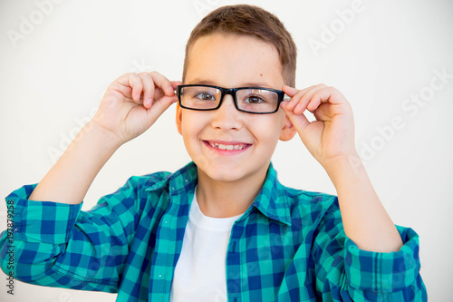 kid wearing glasses