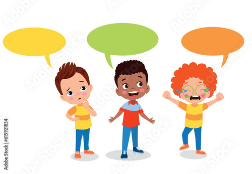 Kids talking with a speech bubble.
