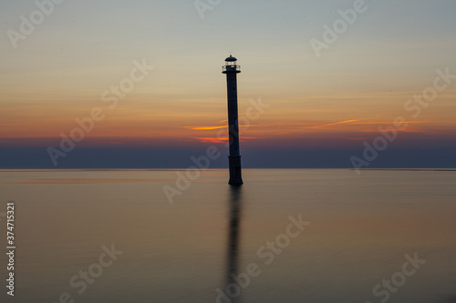 Kiipsaare lighthouse in Saaremaa, Estonia. Iconic local landmark - skew abandoned lighthouse. Sunset with a red colored sky.