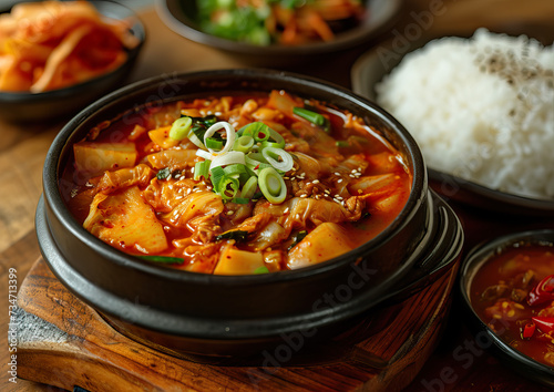 Kimchi Jjigae, Kimchi Stew, Korean traditional cuisine, angle view, ultra realistic food photography