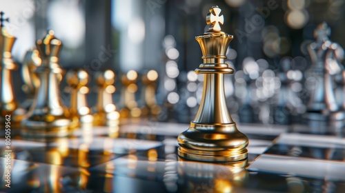 King golden chess standing confront of the silver chess team to challenge concepts of leadership and business strategy management and leadership hyper realistic