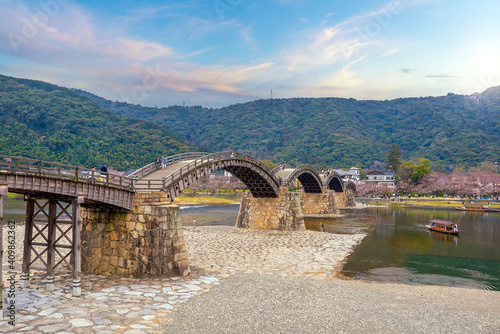 Kintaikyo Bridge in Iwakuni, Japan at sunset
