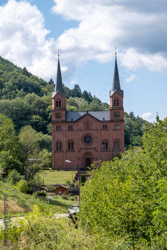 place, village, church, parish church, mountain, wooded, forest, pfalz, rhineland-palatinate, german