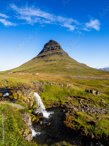 Kirkjufell mountain with water fall in Iceland in summer