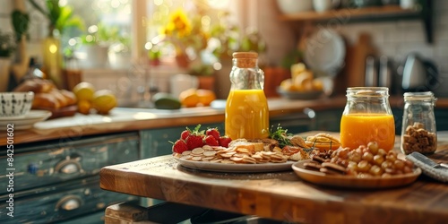 Kitchen Breakfast With Fresh Juice and Snacks. Generative AI