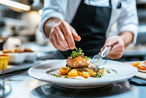kitchen, eatery, epicure, plating, elegance, perfection, chef, food, preparation, creativity, workspace, fresh, stainless steel, precise, artful, discipline, skill, teamwork, hospitality, organised, tied-up, crafted, expertise, premium, cutting edge, bustling, presentation, efficiency, vibrant, tool, meticulous, luxurious, precision, cleanliness, modern, seasoned, high-end, sophisticated, innovation, service, craftsmanship, exquisite