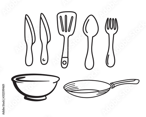 Kitchen tool set line art