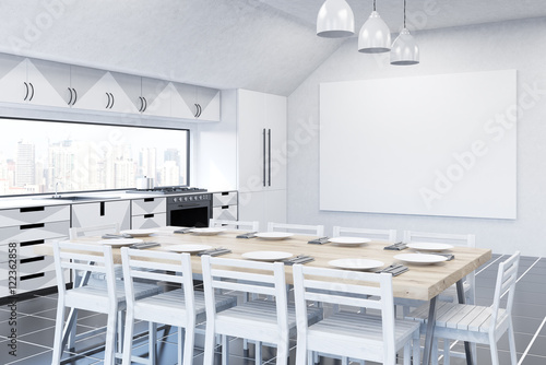 kitchen, table, counter, interior, white, background, design, home, room, indoor, board, desk, colours, modern, top, food, decoration, breakfast, texture, light, wall, surface, space, wood, wooden, empty, place, display, television, set, refrigerator, oven, lamp, chair, dining, tile, architecture, advertise, three-dimensional, render, rendering, illustration, blank, up, mock, copy, clear, nobody, inside