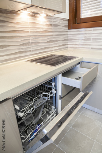 kitchen, open, modern, floor, white, plan, living, drawer, black, room, wood, contemporary, steel, element, fan, decoration, luxury, lounge, stylish, extractor, apartment, new, hot drink, interior, spotlight, light, nobody, home, stainless, grey, domestic, appliance, tap, worktop, electric, cook