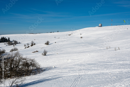 copy space, landscape, winter, climate, nature, radar, german, weather, dome, hesse, cold, blue, joy, outside, telecom, snow, scene, radome, sky, snowy, day, frost, white