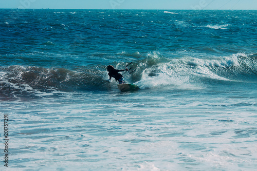 Kitesurfer on a beautiful background of spray during the sunset