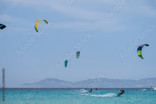 kitesurfing on Illete beachFormentera, Pitiusas Islands, Balearic Community, Spain