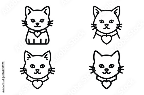 kitten with heart outline icon set for graphic designs. Icons vector design