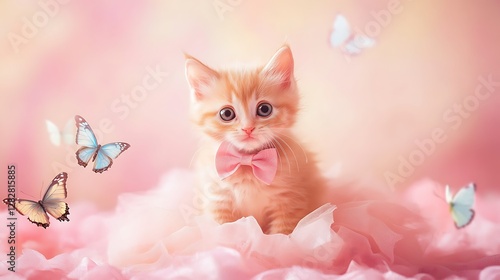kitten with pink rose