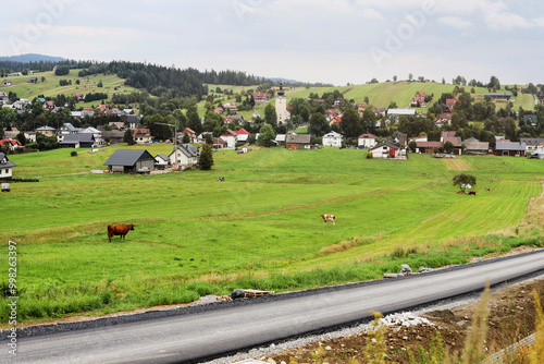 KLIKUSZOWA, POLAND - AUGUST 17, 2024: The town of Klikuszowa in Podhale, where a new section of the S7 route is being built.