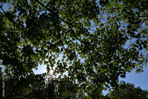 tree, heaven, nature, forest, green, leaf, summer, spring, blue, leaf, twig, sun, natural, park, forest, pine, sunlight, upward, happy, countryside, season