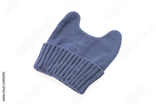 colours, accessory, background, blue, cap, closeup, clothing, cold, fashion, hat, head, isolated, knit up, knitted, outdoors, pom, season, ski, snow, style, warm, white, winter, wool, woolen