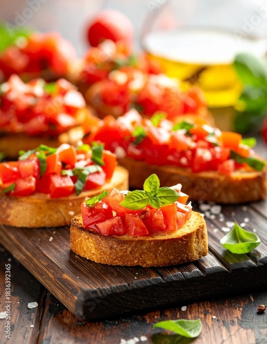 bruschetta, bread, tomatoes, basil, garlic, olive oil, italian, appetiser, snack, antipasto, rustic, fresh, homemade, herb, tasty, mediterranean, kitchen, culinary, epicure, spread, aromatic, simply, homemade, finger food, health food, sandwich, enjoyment