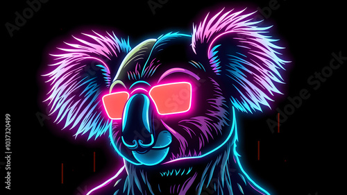 Koala neon avatar vector-style image of cyberpunk head. Generative AI