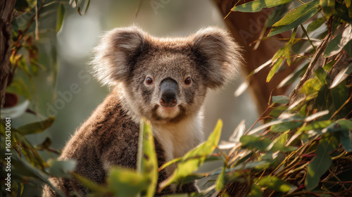 koala, koala, marsupial, australia, wildlife, animal, nature, eucalyptus, tree branch, tree, fauna, mammal, cute, adorable, fluffy, soft light, centered, photo, image, picture, hi-res, detailed, closeup, beautiful