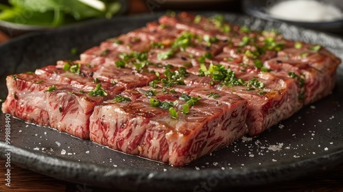 Kobe beef with garlic,salt and pepper/Kobe beef