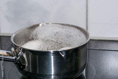 Kochendes Wasser in Pfanne