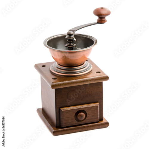 coffee grinder, coffee, utensil, isolated, wooden, mill, crusher, white