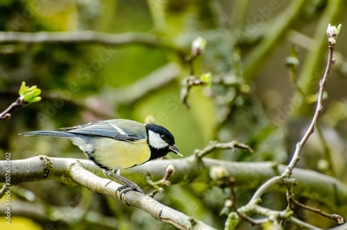 great tit, tit, songbird, vogel, sitting, twig, fauna, yellow, green, spring, twig, black, detail, close-up view, blurred