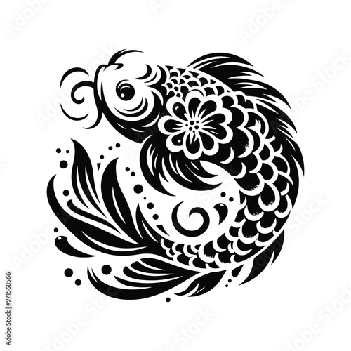 koi, goldfish, gold, animal, fish, coral, reef, aquatic, aquarium, water, wildlife, river, lake, endangered, underwater, swimming, marin, undersea, diving, fishing, seascape, tropical, folk, art, floral, flower, ethnic, silhouette, nordic, scandinavian, folklore, cultural, native, decoration, tradition, ornate, ornament, shadow, cut-out, black-and-white, abstract, isolated, print, badge, shield, emblem, contour