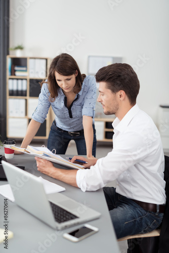 cooperation, woman, man, business, conversation, communication, workplace, plan, document, folder, concept, exchange, colleague, work, labor, project, people, team, office, meeting, meeting, motivation, motivated, standing, communicative, amusement, speak, job, occupation, employee, staff, business, business, person, people, 2, young, attractive, 20s, caucasian, white