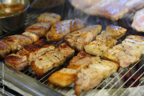 korean, pork meat, belly, grill, grilled, bar-b-q, bar-b-q, meat, sliced, cooking, hot plate, korean food, traditional, asian, cookery, dinner, lunch, savoury, flavorful, meal, culinary, epicure, tasty, protein, plating, fresh, delicacy, favor, eat, delicious, cook, dining, receipe, feast, smoky, korea, food, grilling, roasted, eatery, roast, hot, plate