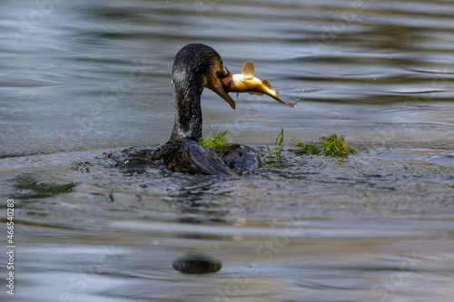Kormoran (Phalacrocorax carbo) mit erbeutetem Fisch