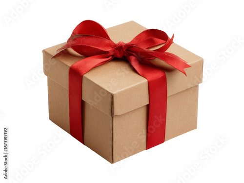 Kraft gift box with red ribbon bow isolated on black background, Isolated On White Background, Png Transparent