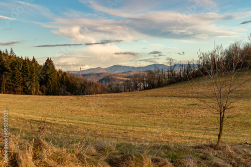 landscape, heaven, mountain, grass, cloud, field, hill, countryside, rural, vale, green, travel, scenic, blue, beauty, poland, tree, early spring, beautiful, way