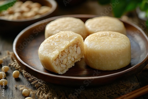 Kue ku A dessert with mung bean filling made from glutinous rice flour served on a brown plate