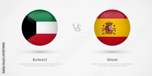 Kuwait vs Spain country flags template. The concept for game, competition, relations, friendship, cooperation, versus.