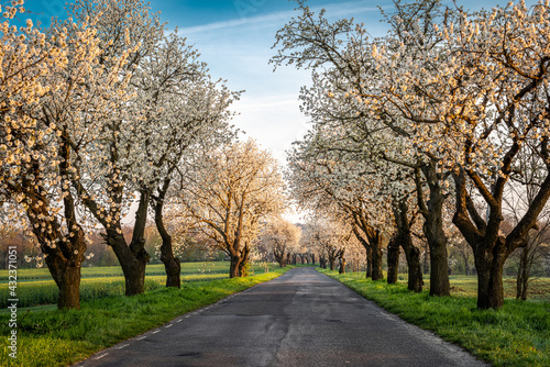 cherry, tree, amusement ride, garden, poland, way, white, flower, stare, tradition, nature, tree, landscape, autumn, green, forest, heaven, grass, spring, fall, rural, country, avenue, field, blue, leaf, wood, countryside, alley, asphalt