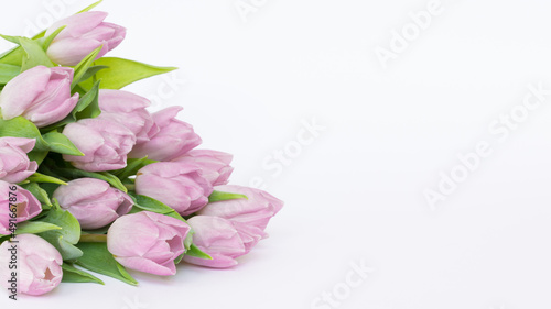 Kwitnące, różowe tulipany na białym tle
