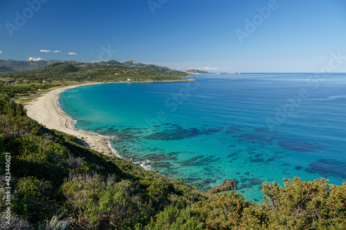 sea, beach, water, ocean, blue, landscape, coast, island, heaven, bay, summer, nature, shore, travel, view, green, sand, vacation, shore, seascape, tropical, turquoise, beauty, mediterranean, corsica