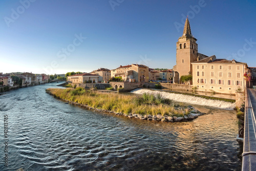marco, outside, water, river, bank, pyrenées, light, spring, summer, aquatic, heaven, village, town, french, mirror image, mirror image, historical building, city, townsfolk, course, lake, landscape, architecture, bridge, france