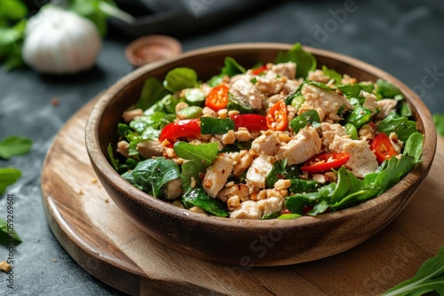 calorie, food, mince, low, chicken, lean, rice, salad, thai, gay, menu, high, protein, spicey, dish, green, northeast, healthy, receipe, meat, topview, plate, diet, vegetable, meal, eating, fat, lettuce, mint, cucumber, lime, bean, coriander, breast, cilantro, shallot, powder, scallion, clean, delicious, hot, northeastern